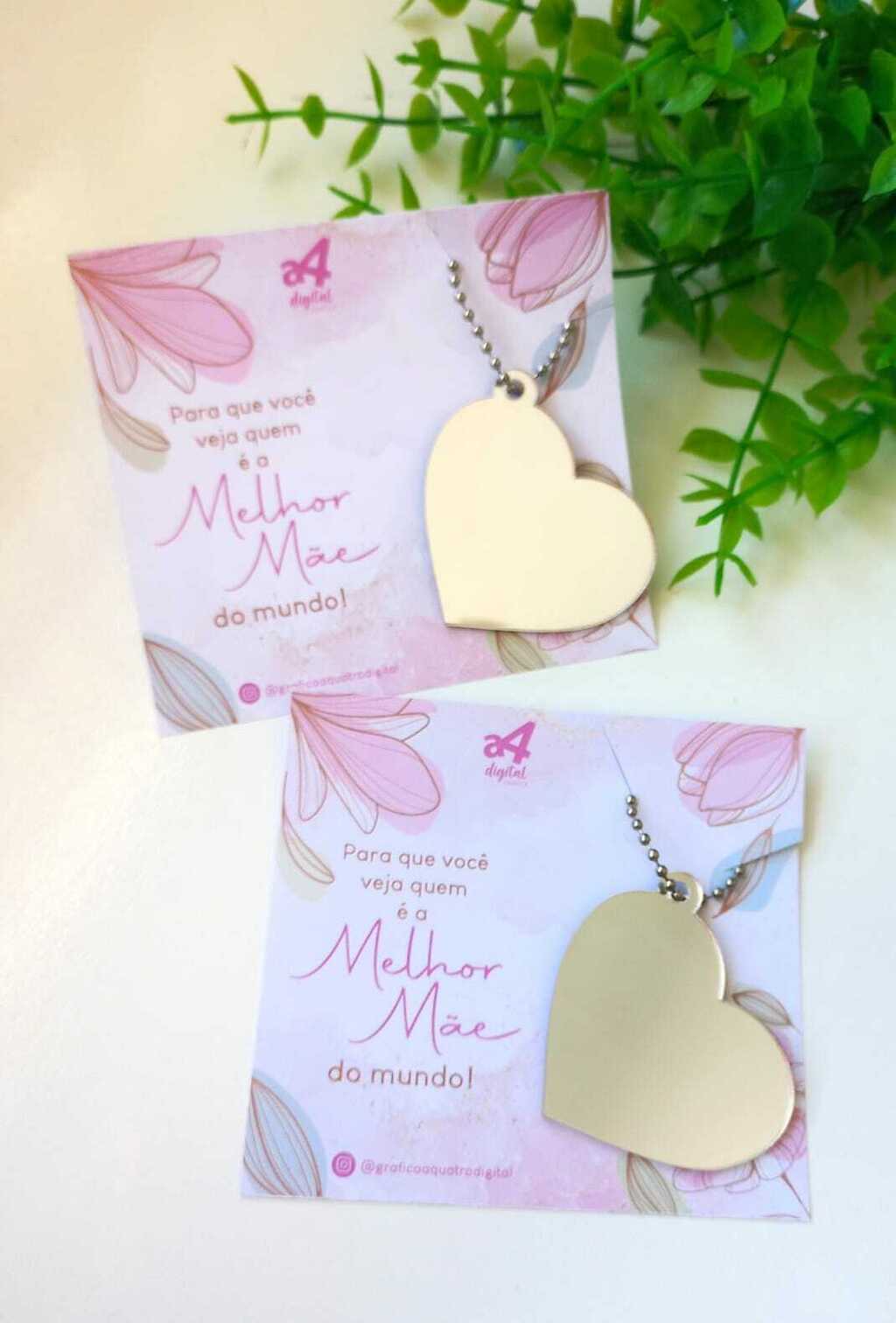 Card com chaveiro de coração adesivado com logo no verso.